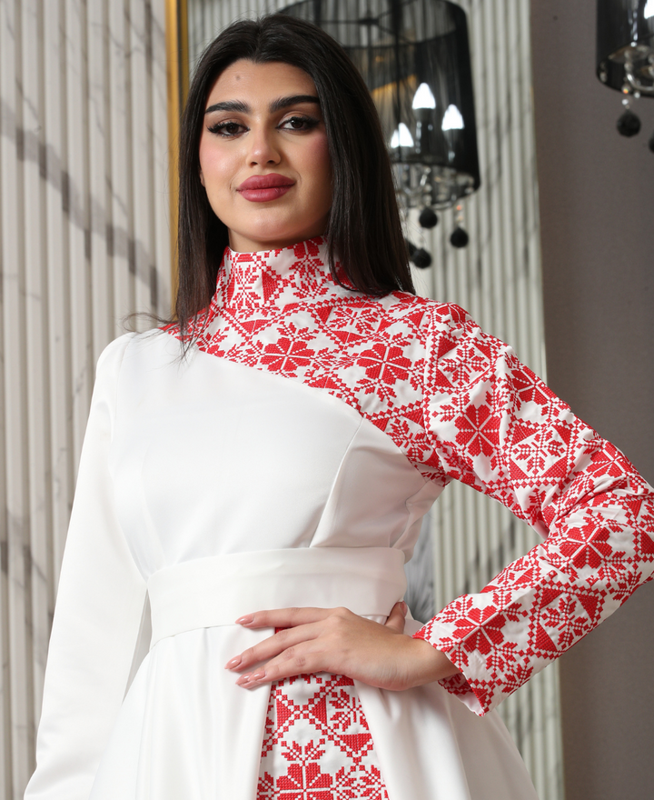 This Embroidered 1003 is made in Jordan from the finest silk threads and the best fabrics ( satin taiwan ). It is a high-end piece of art designed to make you unique at your occasion.