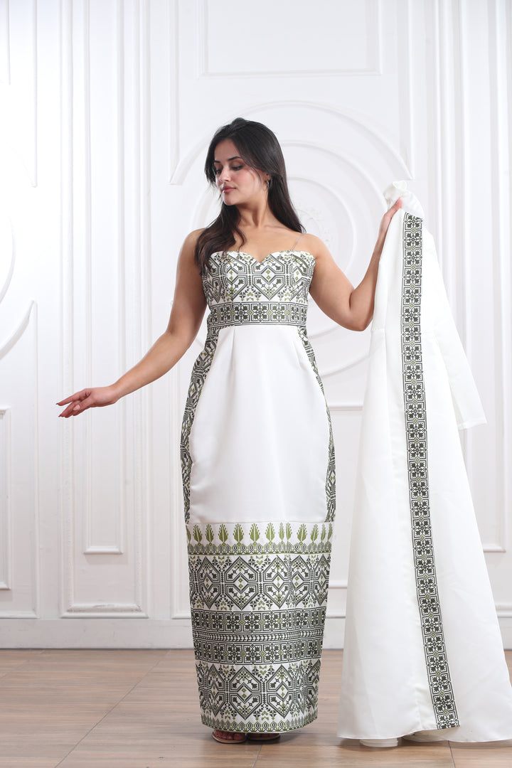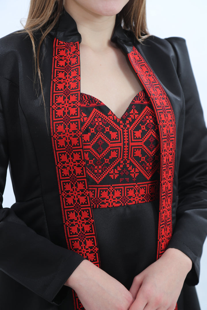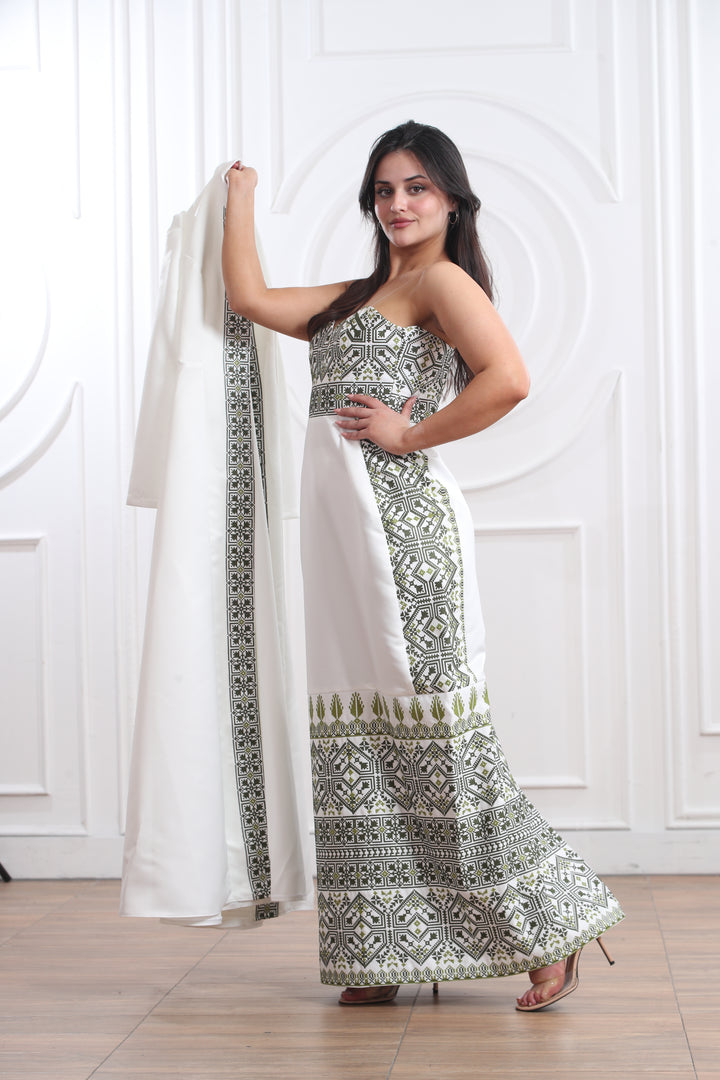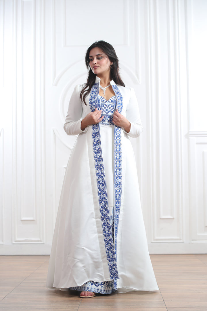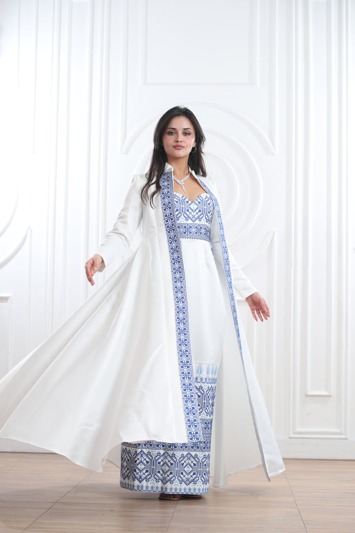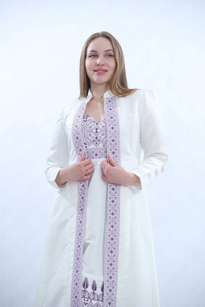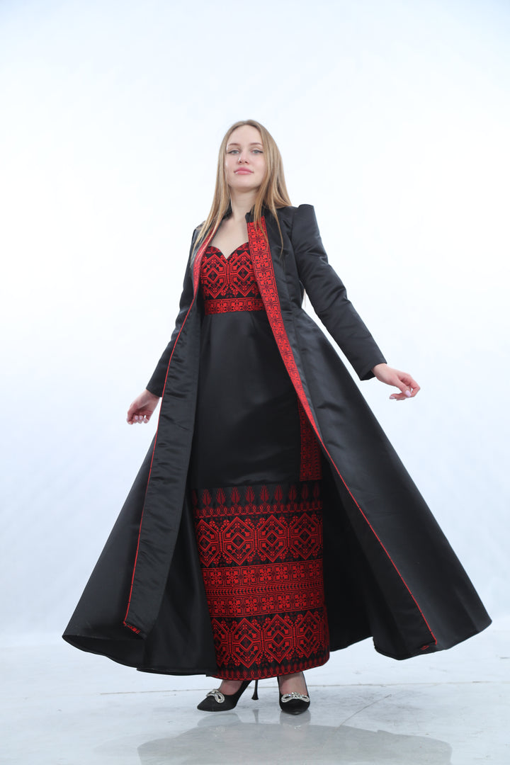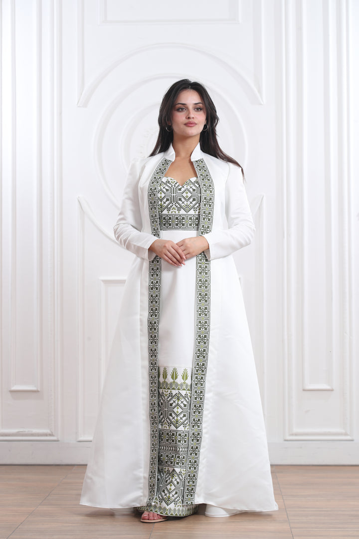 This Embroidered Strapless Lilac Embroidered Dress with Matching Jacket Set #1092 is made in Jordan from the finest silk threads and the best fabrics ( satin Taiwan ). It is a high-end piece of art designed to make you unique at your occasion.