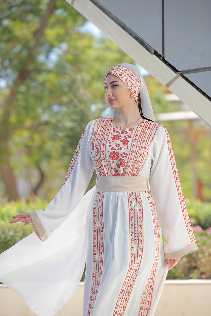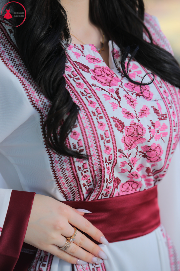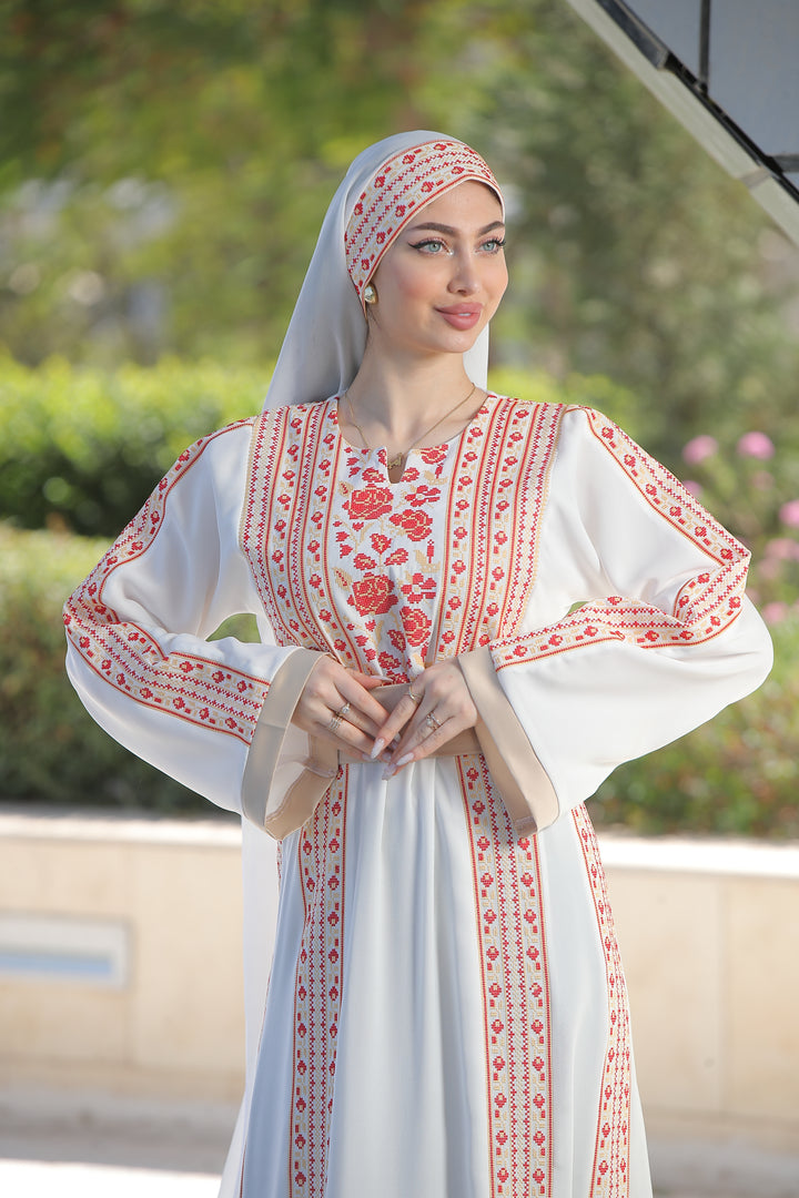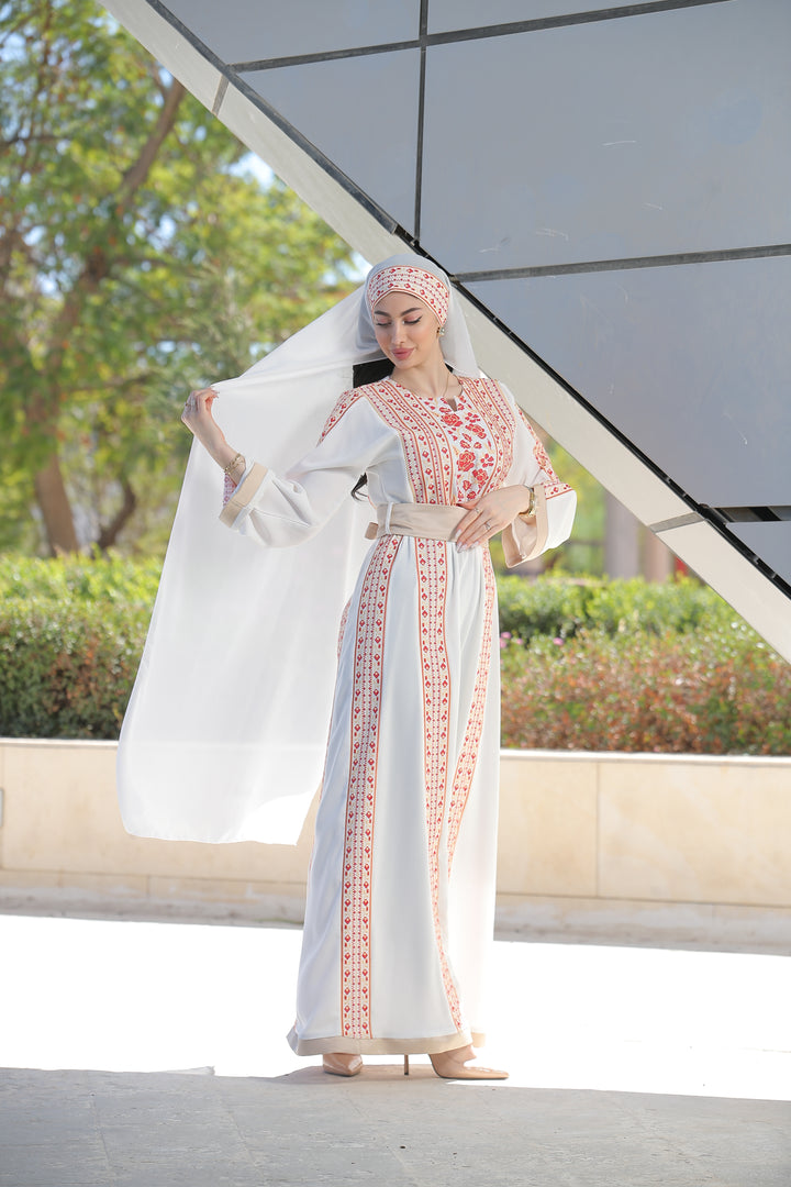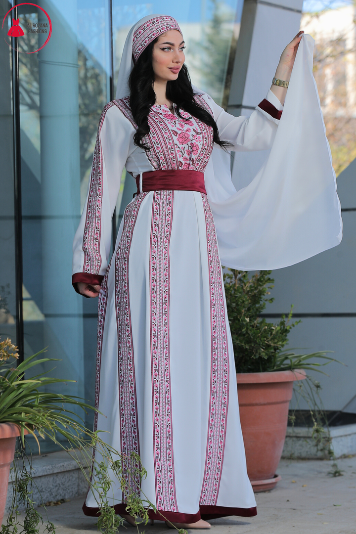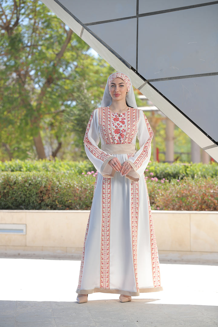 This Embroidered Elegant Heritage Embroidery Gown – Timeless Style #119 is made in Jordan from the finest silk threads and the best fabrics ( korean portorico ). It is a high-end piece of art designed to make you unique at your occasion.