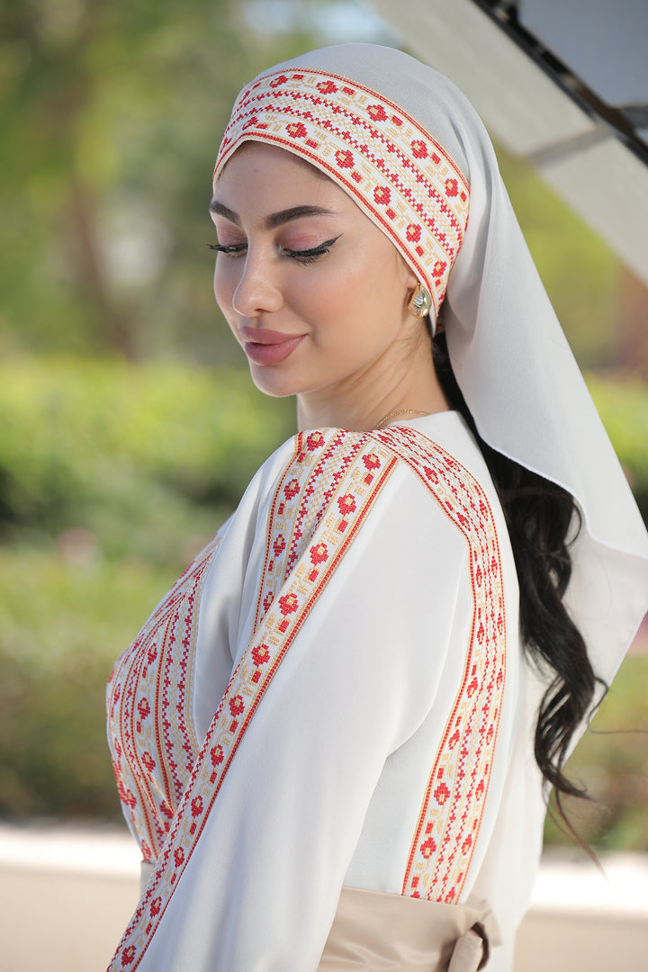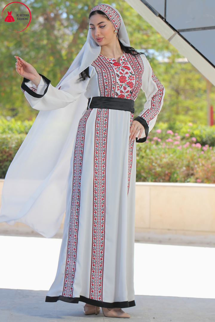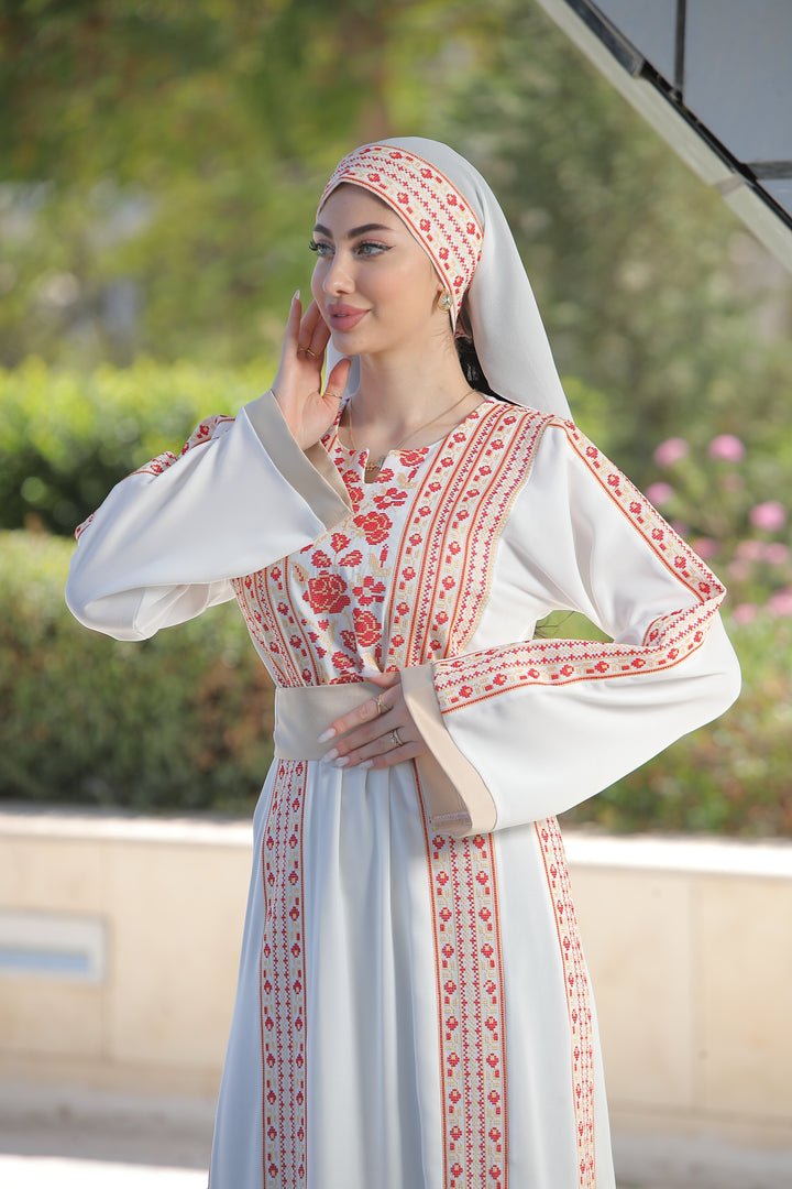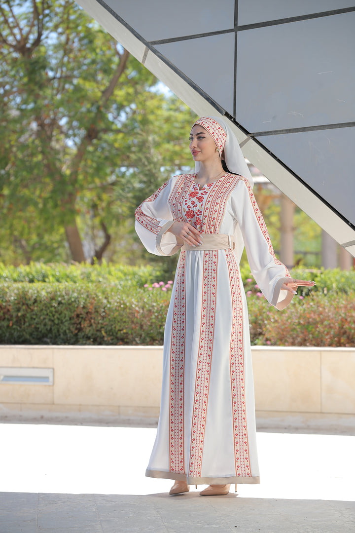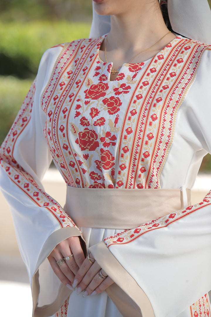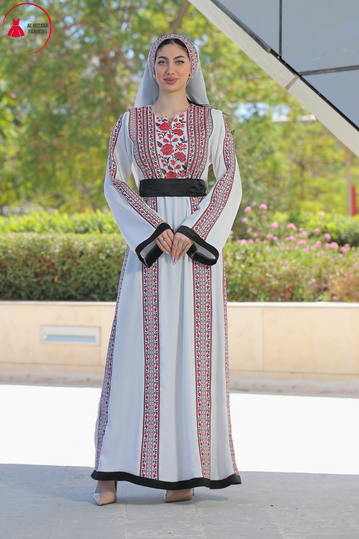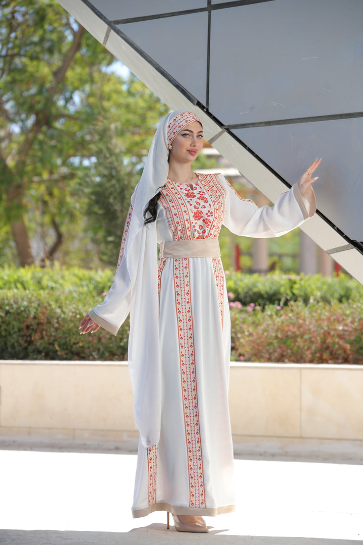 This Embroidered Elegant Heritage Embroidery Gown – Timeless Style #119 is made in Jordan from the finest silk threads and the best fabrics ( korean portorico ). It is a high-end piece of art designed to make you unique at your occasion.