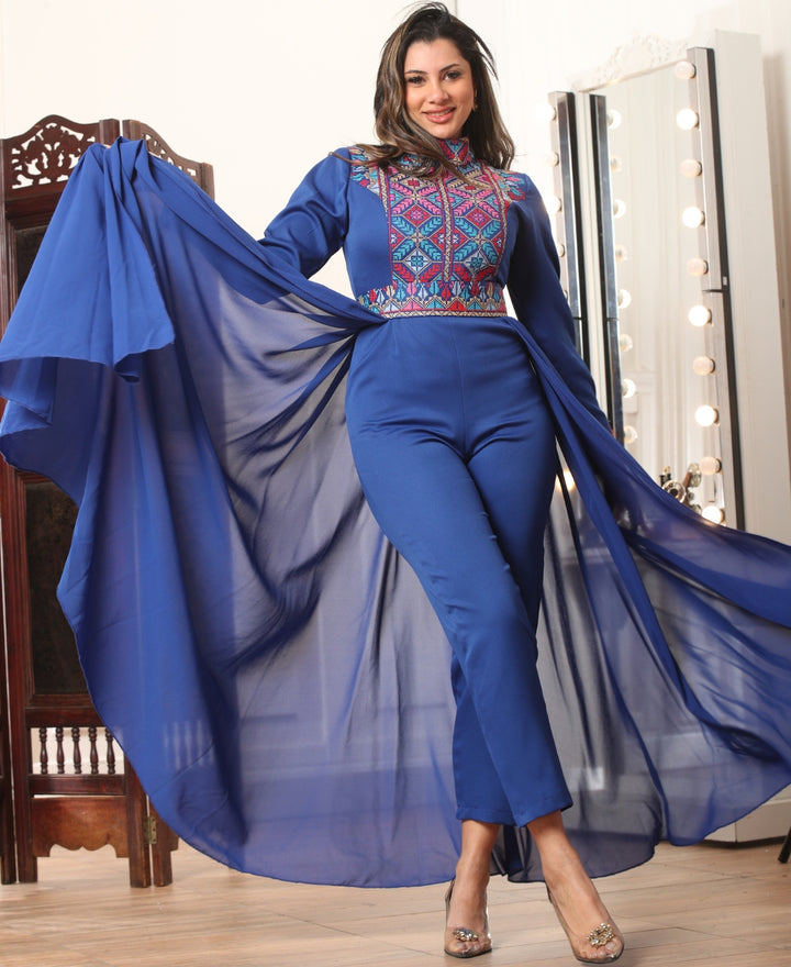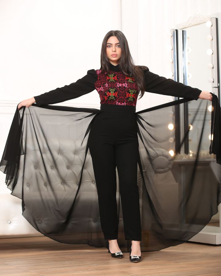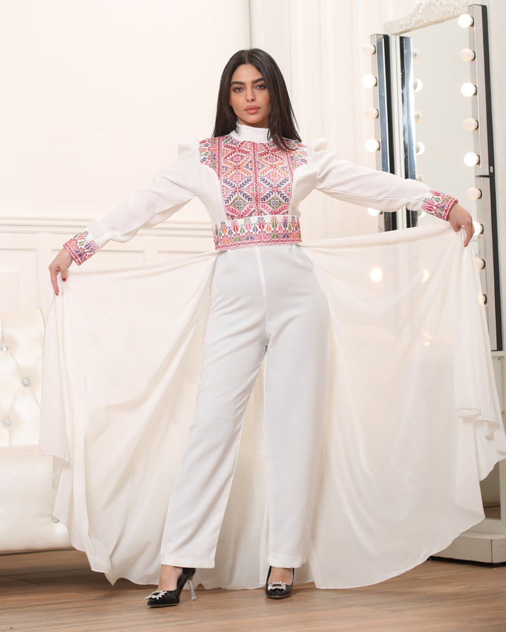 Signature Embroidered Jumpsuit with Cape – Crafted for Special Occasions #16