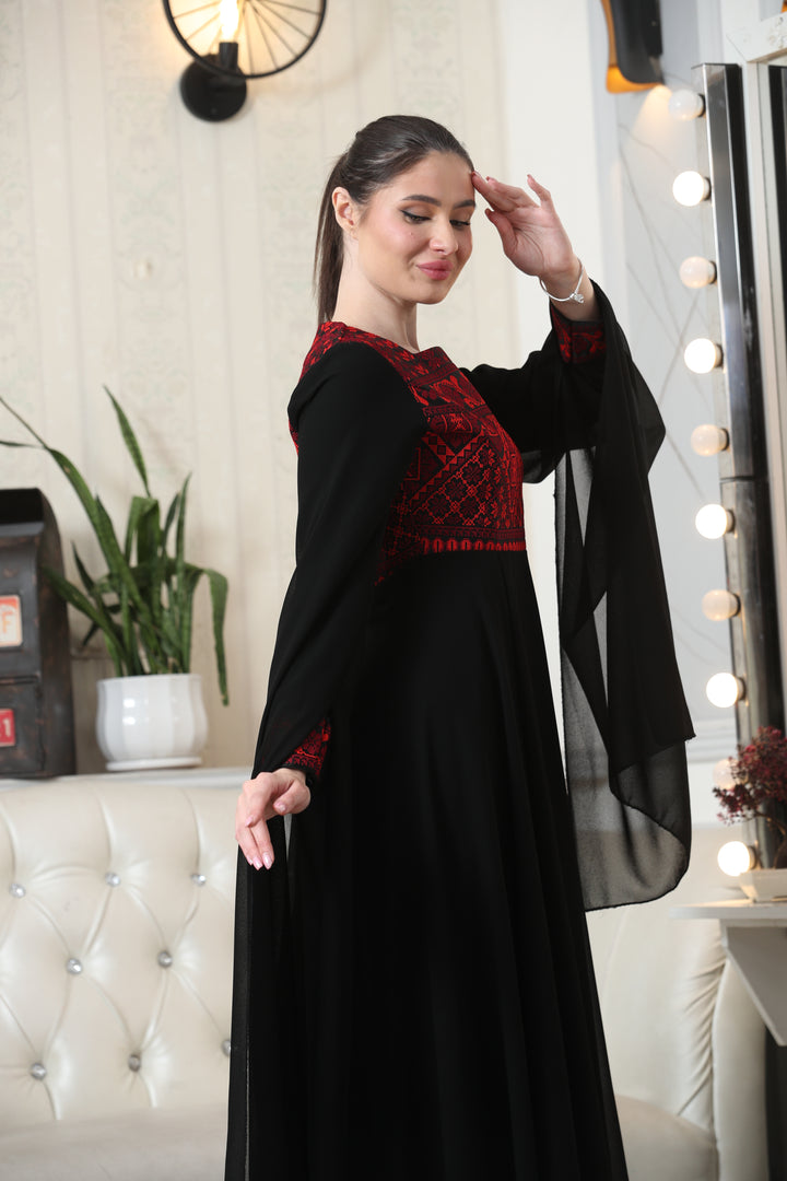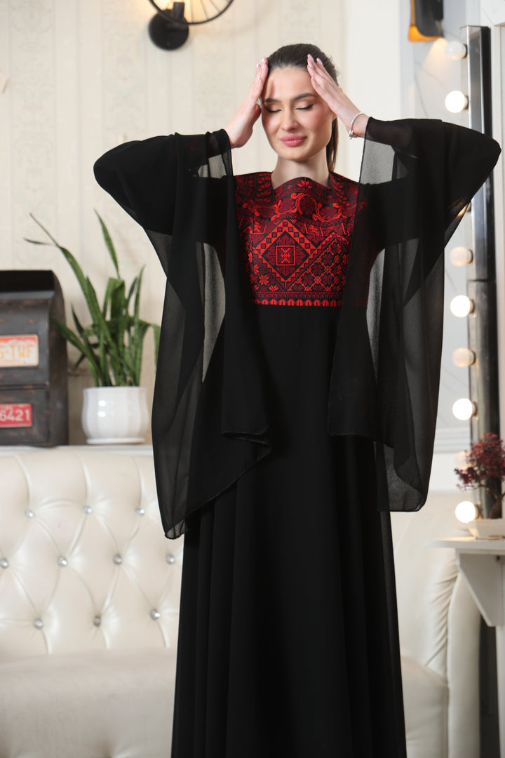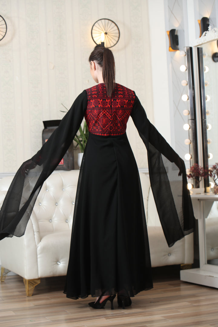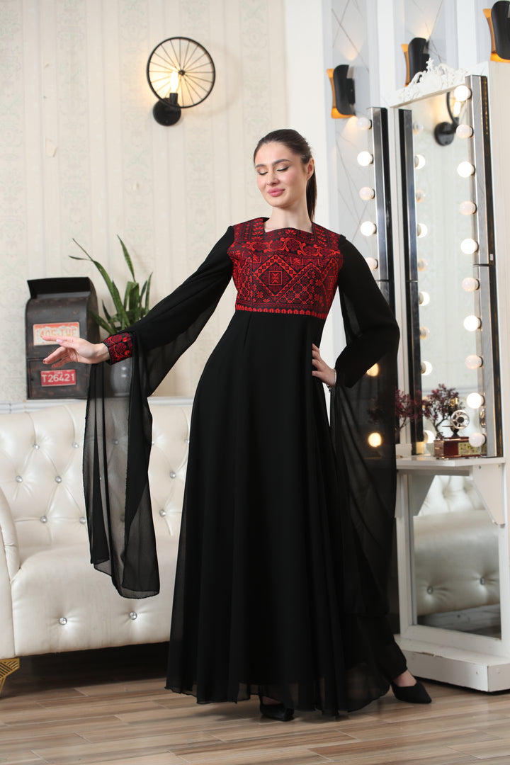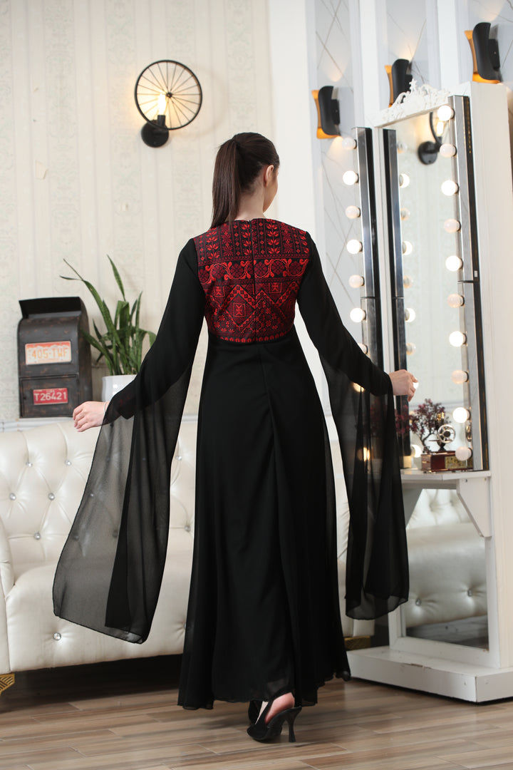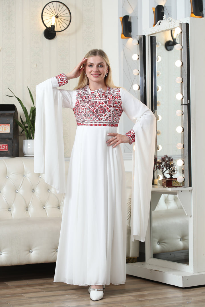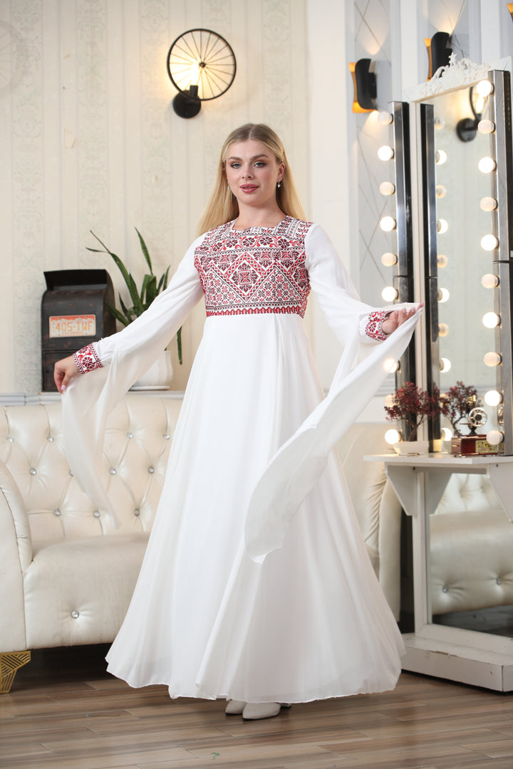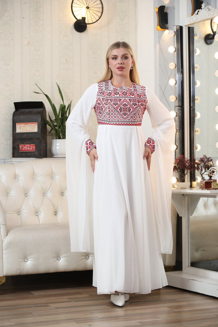 Embroidered Wide-Sleeve Dress with Heritage Patterns #1087