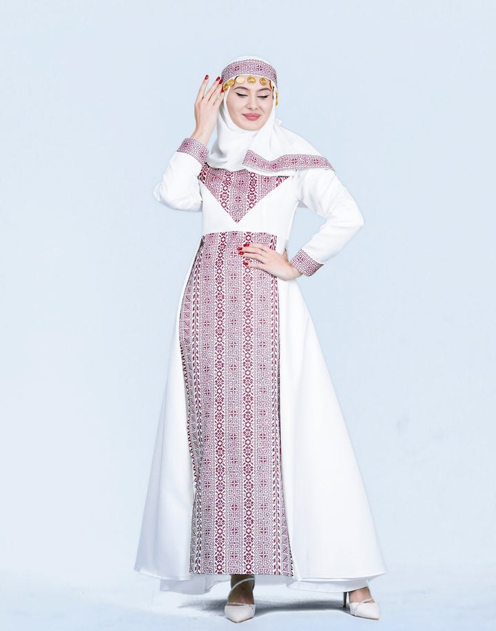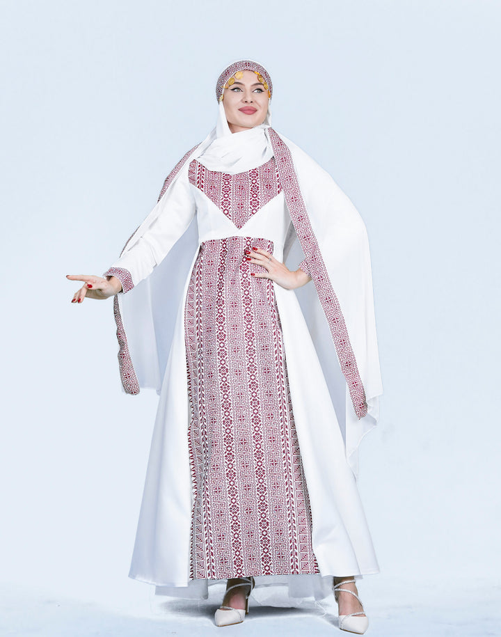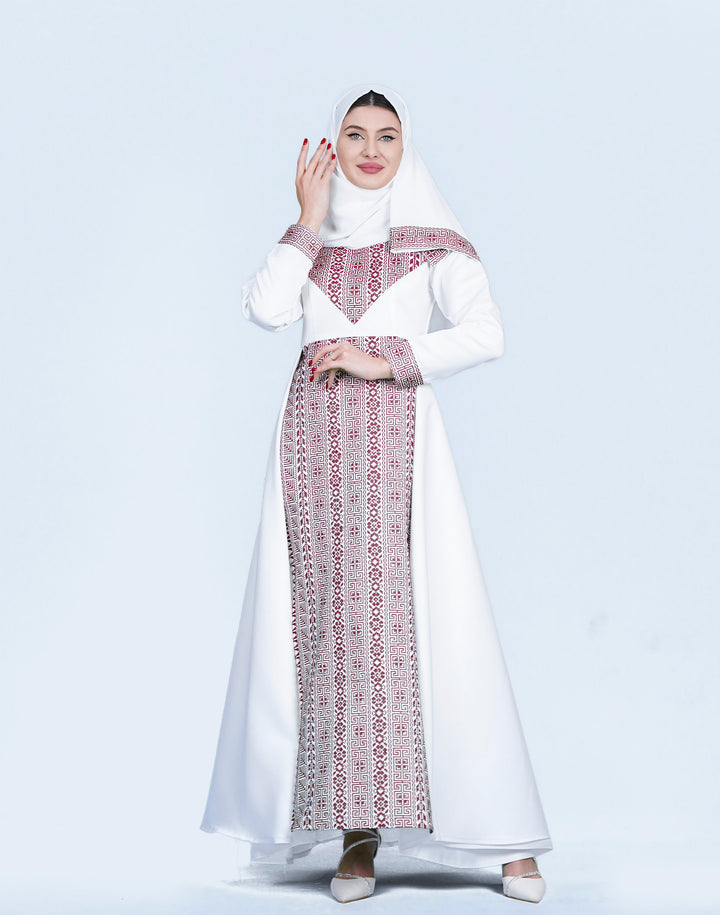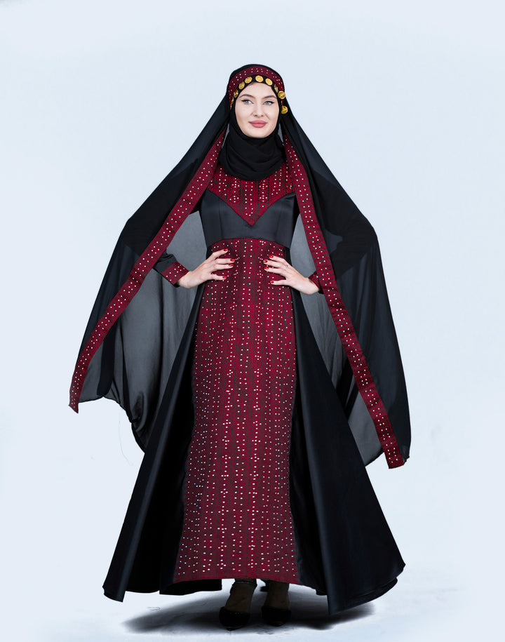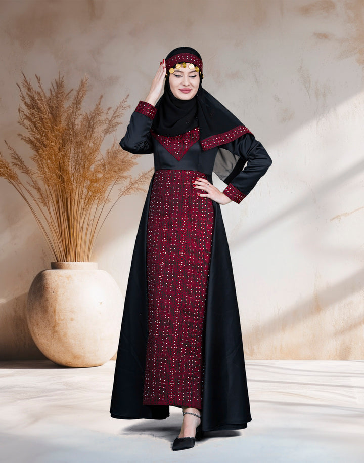 This Embroidered Premium Embroidered Dress & Abaya Set – Artisanal Detailing for Refined Elegance #1095 is made in Jordan from the finest silk threads and the best fabrics ( satin taiwan ). It is a high-end piece of art designed to make you unique at your occasion.