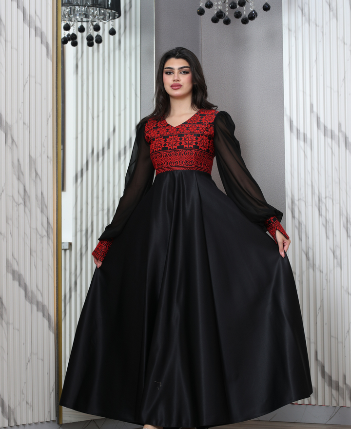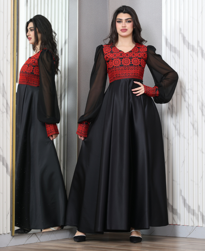 Heritage Embroidered Dress with Sheer Sleeves – Elegant Full-Length Design #9